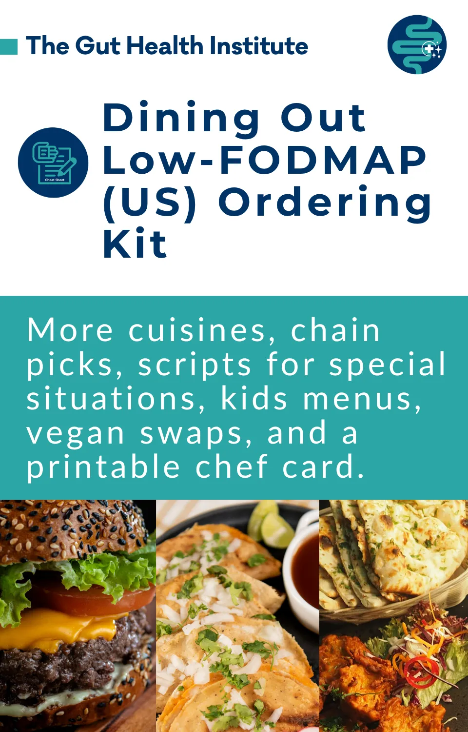 Designed by clinicians and gut-health educators, it gives you ready-to-use tools, cuisine cards, conversation scripts, and a printable chef card to help you dine out safely and stress-free.